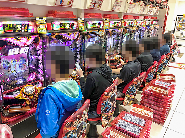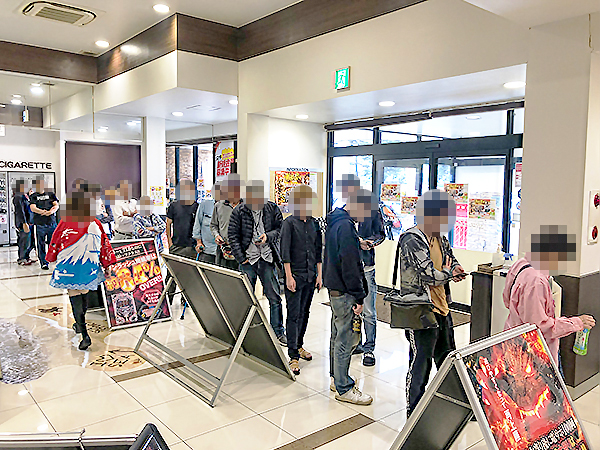 取材当日は新台入替のため、14時に抽選を開催。新台での遊技を心待ちにするプレイヤーが長蛇の列を作っていた。