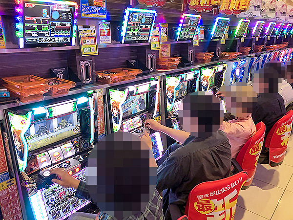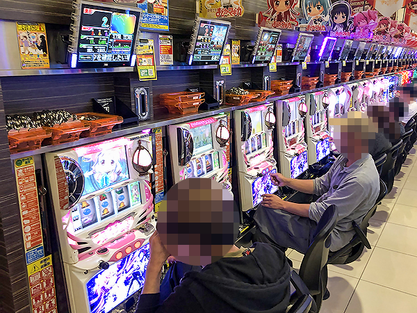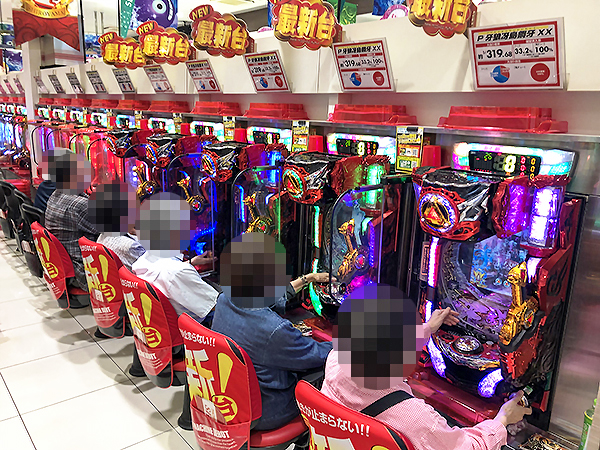 14時ごろの店内を見て回ると、4円パチンコの「P牙狼冴島鋼牙XX」や20円パチスロの「パチスロ ガールズ&パンツァーG~これが私の戦車道です!~」といった、新台を中心に席が埋まっていた。