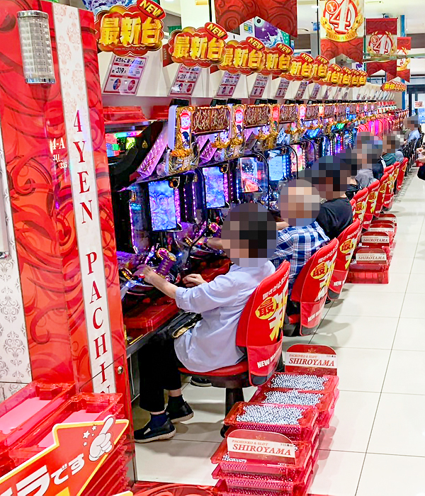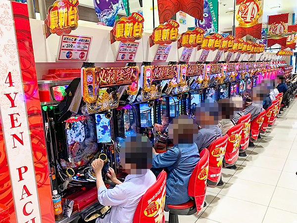 14時ごろの店内を見てみると、4円パチンコの「ぱちんこ 新・必殺仕置人」や20円パチスロの「パチスロ鉄拳4」といった新台に人気が集まり、次々と席が埋まっていた。