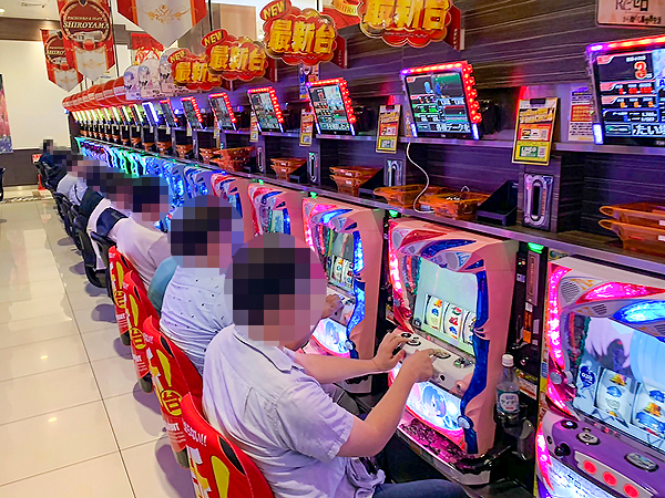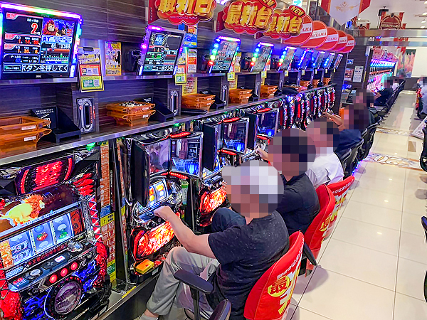 18時過ぎの4円パチンコを見てみると「ぱちんこ 新・必殺仕置人」や「PA真・怪獣王ゴジラ N2-K6」、「P牙狼冴島鋼牙XX」が盛況の様子。新たな演出に気持ちを高ぶらせるプレイヤーを確認している。