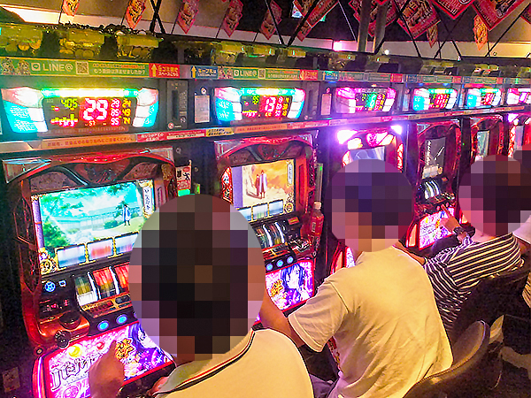 14時過ぎの20円パチスロをチェックすると「ミリオンゴッド-神々の凱旋-」や「アナザーゴッドハーデス-奪われたZEUSver.-」が盛況の様子。プレイヤーたちの満足気な表情が印象に残っている。