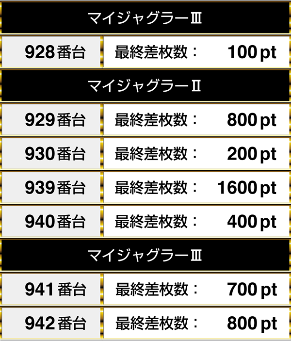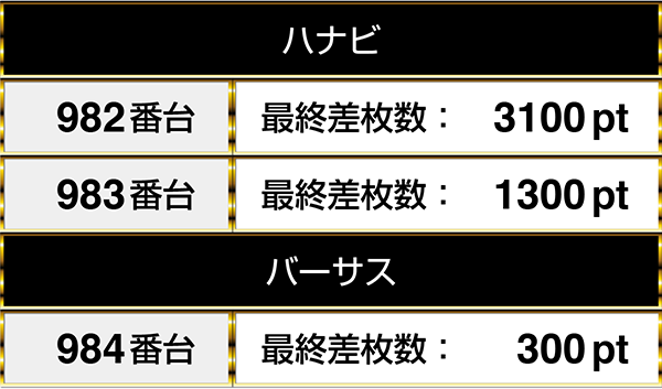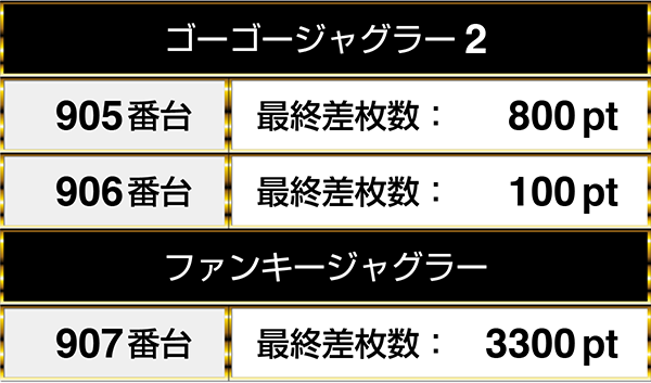 閉店時のデータでは、3台以上がプラスptを記録する場所が2箇所にあった。