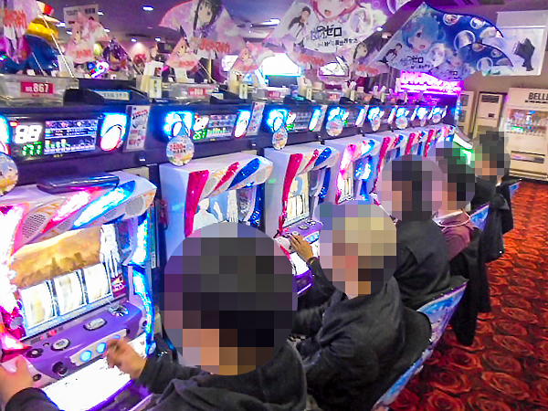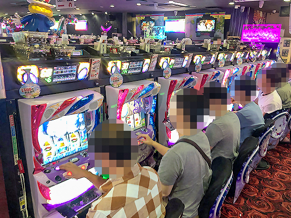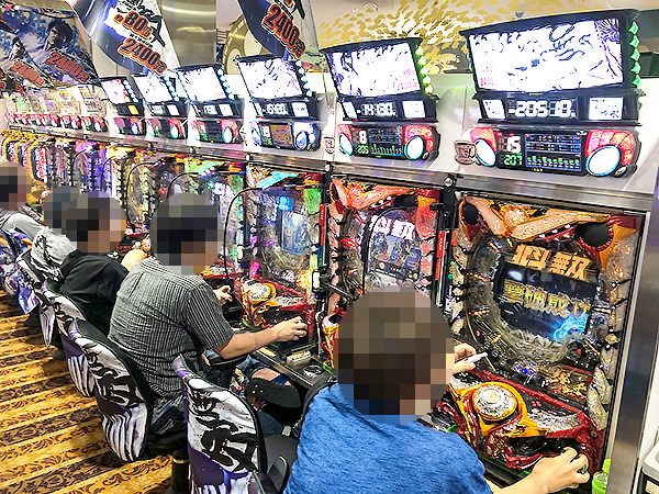 16時ごろの4.16円パチンコを見てみると「ぱちんこCR真・北斗無双」や「CRフィーバー戦姫絶唱シンフォギア」が大盛り上がり。魅力的なシーンをシマのあちこちで目にしている。