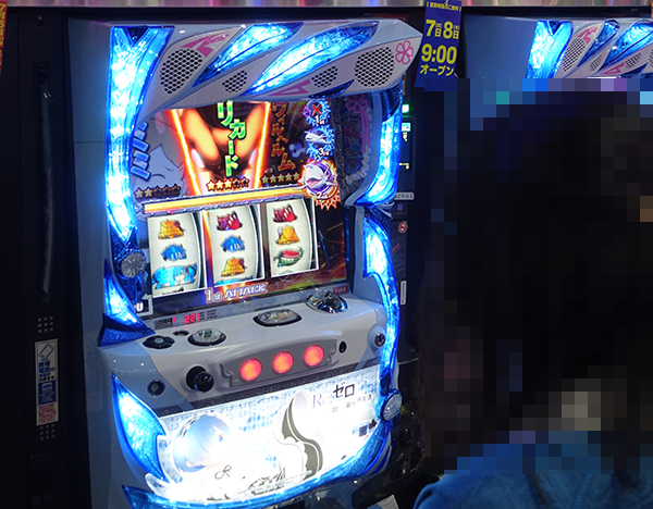 紫色のカーペットや壁も目立つパチスロコーナーを進んでいくと、大きな活気を感じた。半円を描くような形のシマや壁に沿うように曲線を描くシマなど、いたるところで遊技を満喫する姿を確認。なかでも、ひときわ大きく盛り上がっていたのは「Re:ゼロから始める異世界生活」だ。