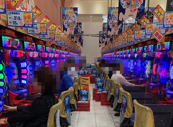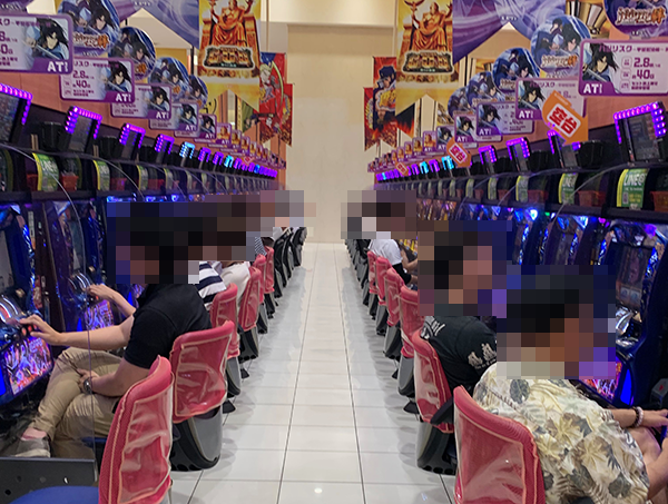 パチスロ全体の雰囲気が明るく、プレイヤーたちは充実した時間を過ごしている様子であった。