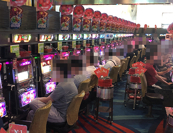 パチスロで設置台数がもっとも多く、取材時は空席がほとんどみあたらなかった。