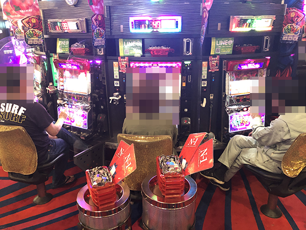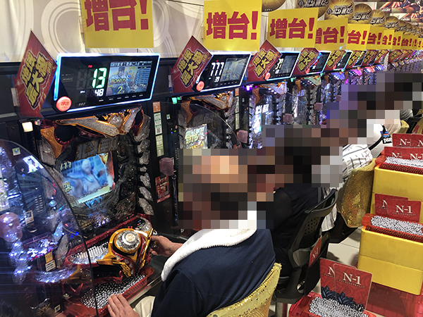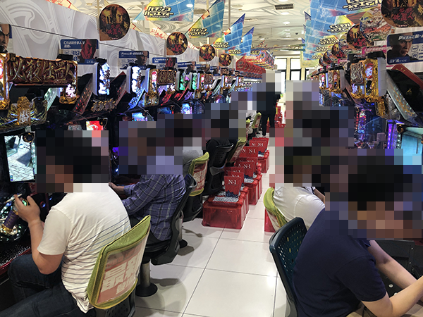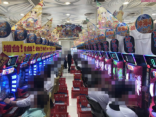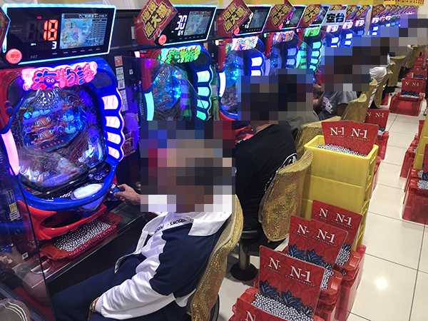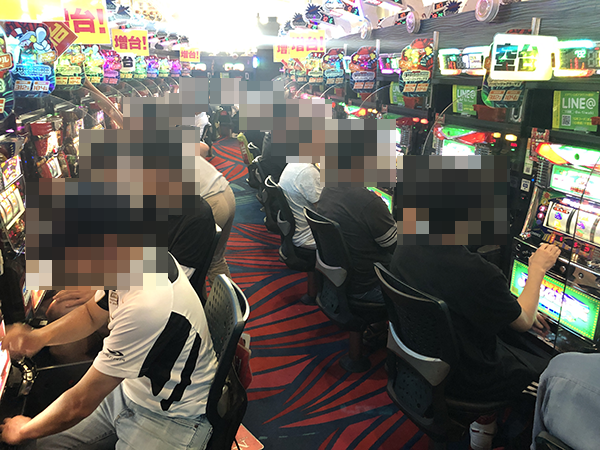 『CR大海物語4』や『CRスーパー海物語IN沖縄4』にて、プレイヤーたちが活躍! 合戦場のような活気が感じられるなかで、笑みを浮かべて遊技をおこなっていた。