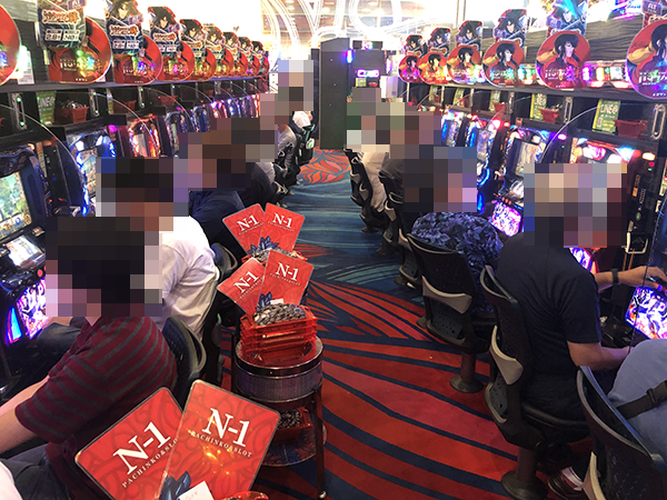 ホール全体に笑顔が咲き誇っていた「エヌワンいわき店」。1日を通して、じっくりと遊技を楽しめそうなホールじゃった。