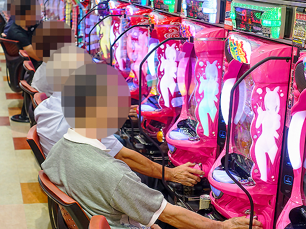 15時半過ぎの1円パチンコを見渡すと、「CRスーパー海物語IN沖縄4」や「CRAスーパー海物語IN沖縄4withアイマリン」など、海物語シリーズの盛り上がりが大きい。シマ全体がプレイヤーの熱気に包まれていた。