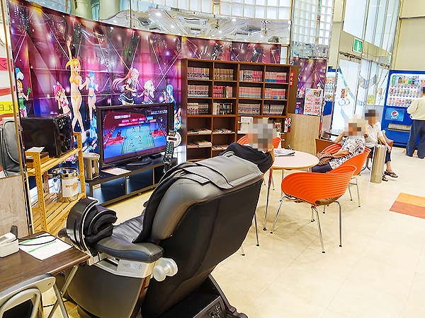 レストスペースは広々として居心地が抜群。マッサージチェア・テレビ・漫画本なども用意されており、プレイヤーたちは皆、リフレッシュできていたようだ。