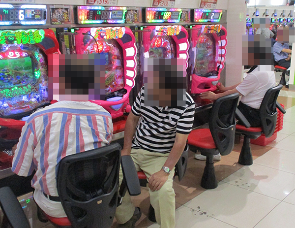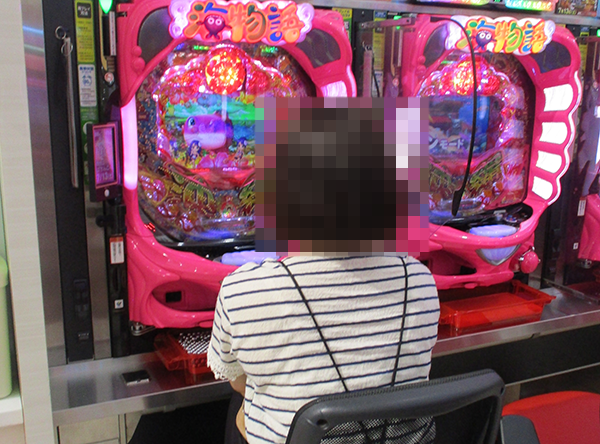 さまざまなスペックの機種が同じシマに設置されているなかで、ひときわ楽しそうに遊技をおこなう姿があったのは「CRスーパー海物語IN沖縄4」。