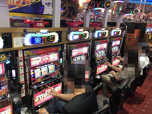 目を向けたときの「ゴーゴージャグラー2」には長い時間、遊技をおこなっていることがうかがえるプレイヤーもいれば、着席したばかりという姿もあった。プレイヤーの表情もさまざまだが、全員が共通して楽しい時間を過ごせていたイメージ。みているだけで晴れやかな気分になった。