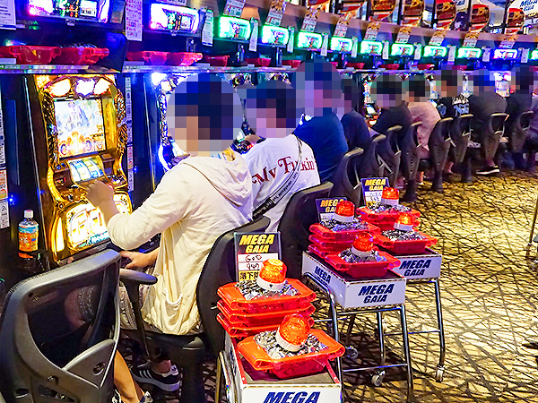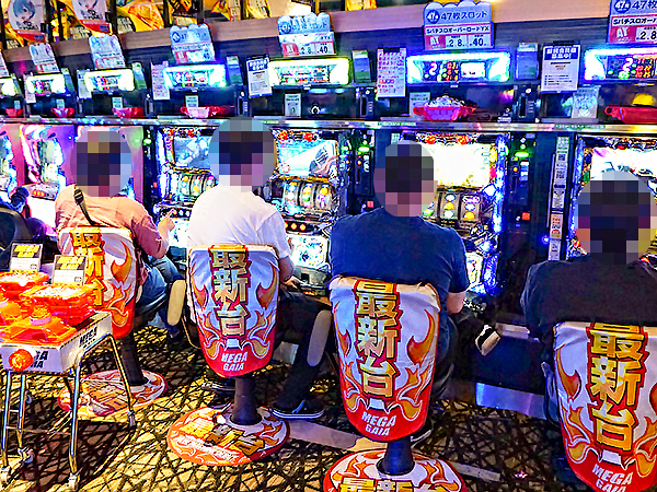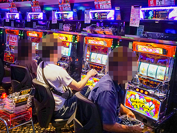 5円パチスロの様子をうかがうと、様々な機種で楽しそうにレバーを叩くプレイヤーが見受けられた。