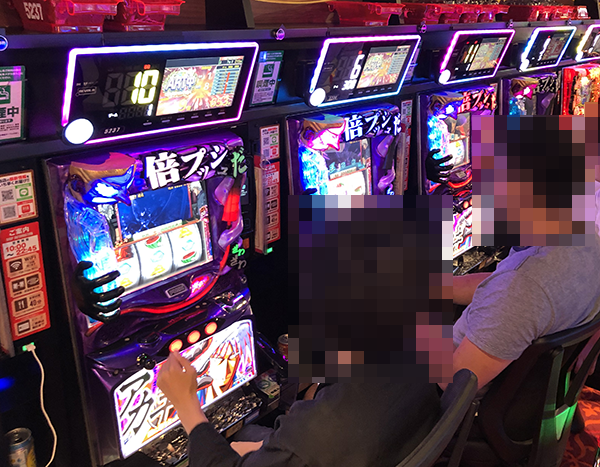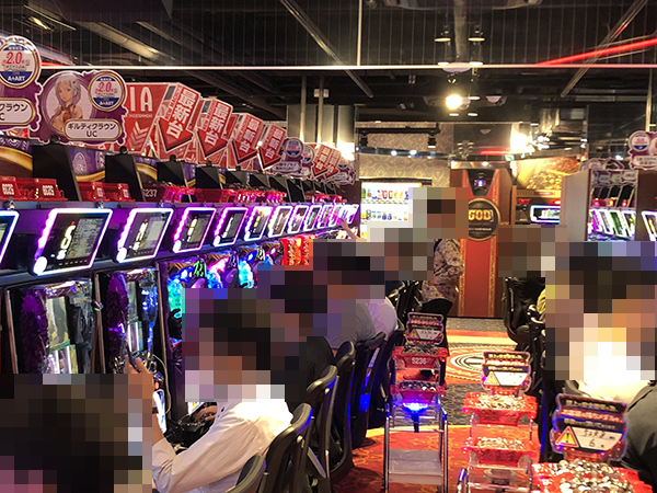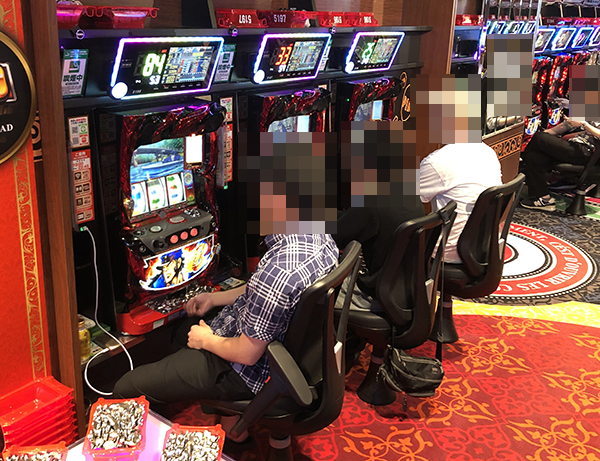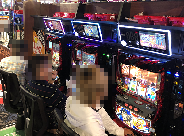 この日は新台入れ替えがおこなわれており、新台をはじめ、さまざまな機種が支持されていた。