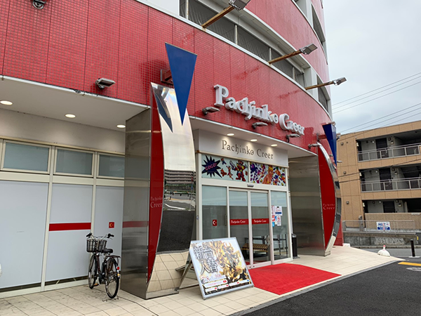 赤色の外観が鮮やかな「パチンコクリエ十日市場店」で「真双龍」をおこなった。