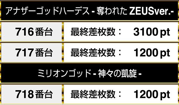 最終的には3台が並んでプラスptとなり、なかには3000ptを上回るデータも残っていた。
