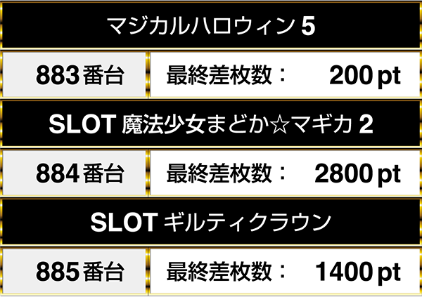 『マジカルハロウィン5』と『SLOT魔法少女まどか☆マギカ2』、そして『SLOTギルティクラウン』の3機種にわたってプラスptを記録!!