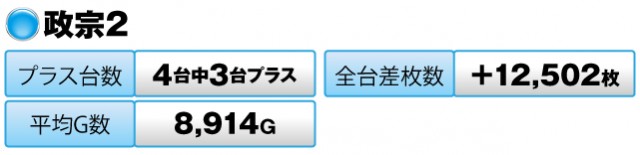 同じメーカーの『政宗2』も優秀な結果をマーク。