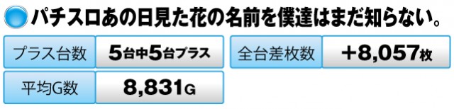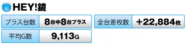 8台すべてがプラスで全台差枚数も+22,884枚と優秀。