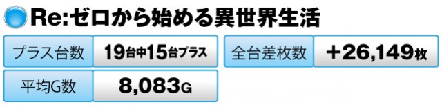 19台中15台がプラスで全台差枚数は+26,149枚を記録した。