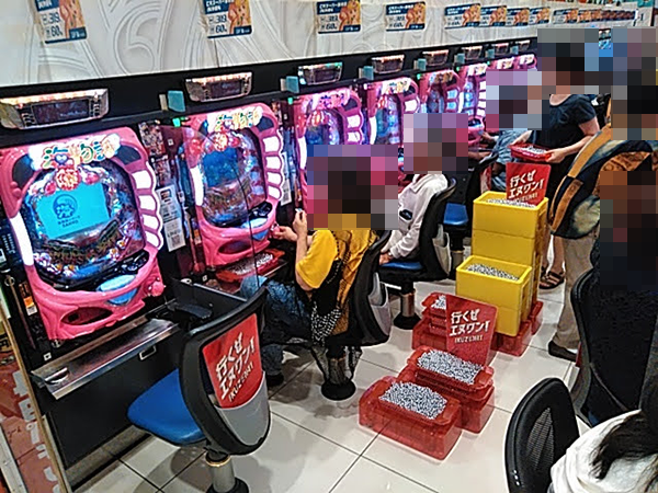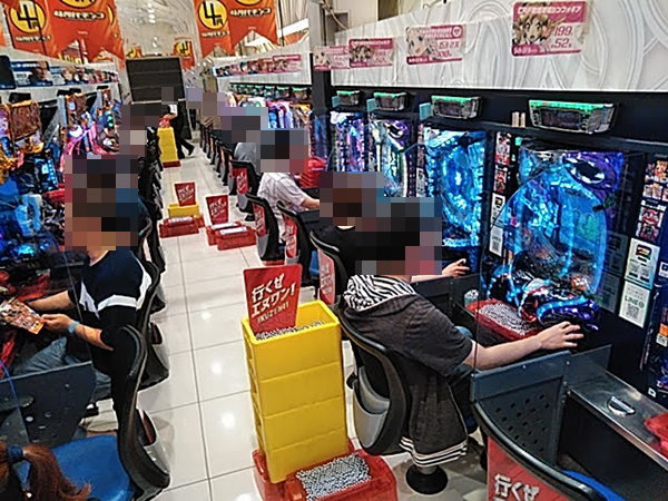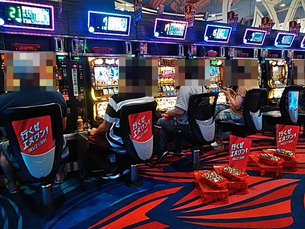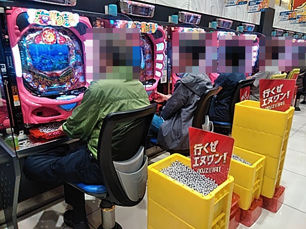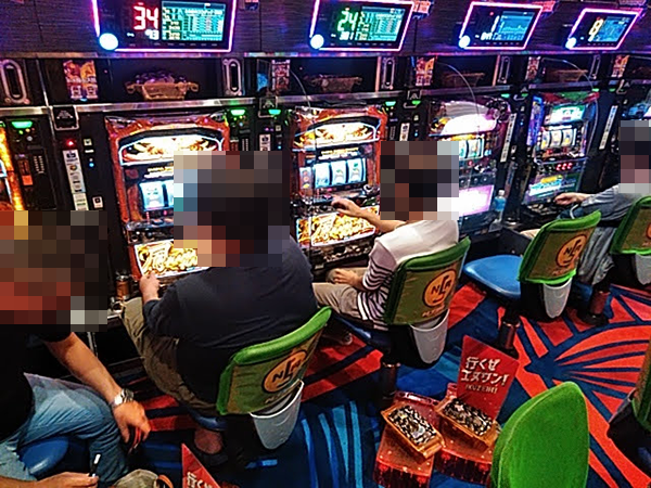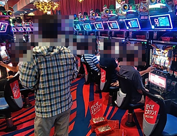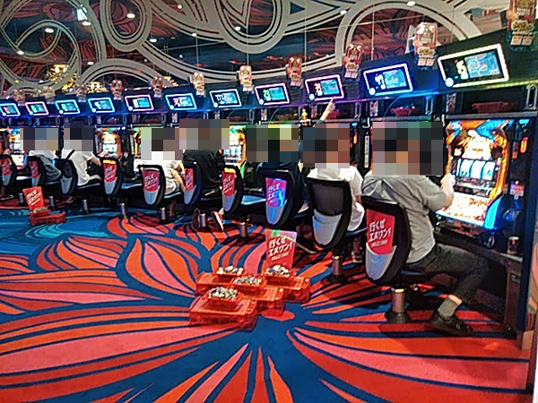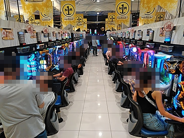 戦さ場のように活気づいていた「エヌワン赤道店」。パチンコとパチスロの両方で、鮮やかな光景を目にすることができた。