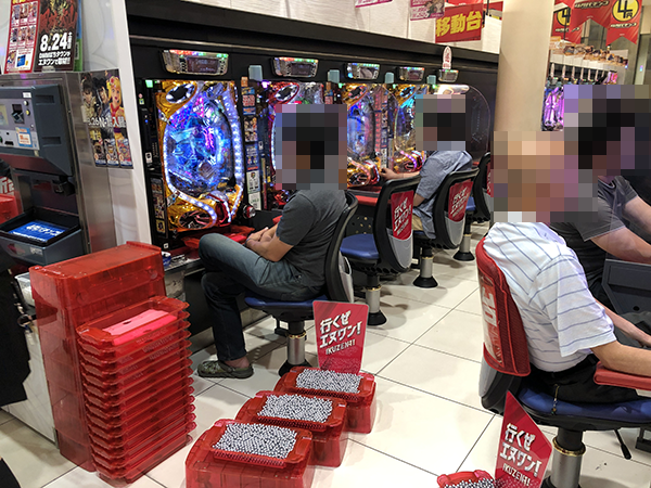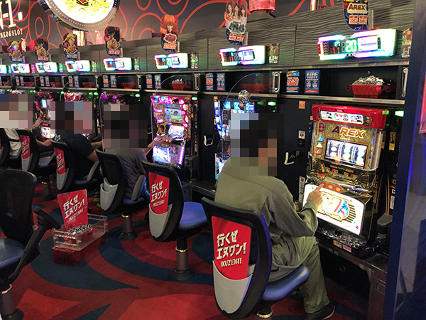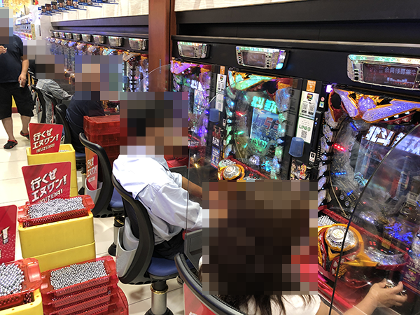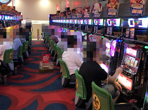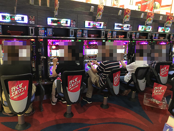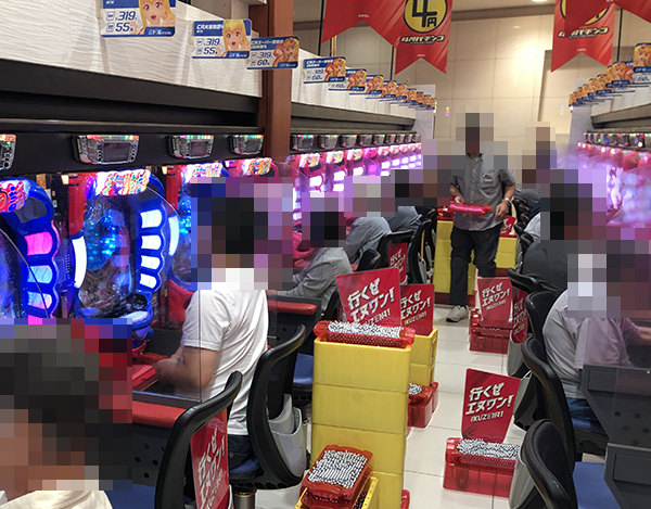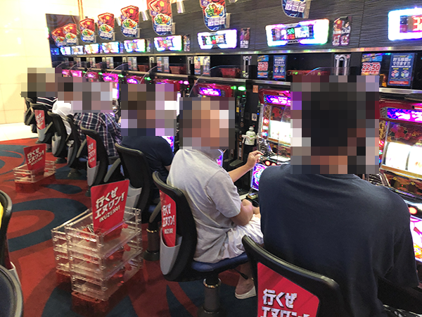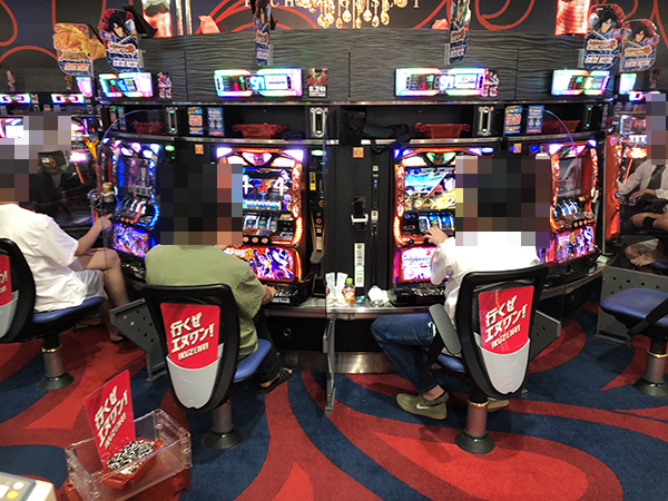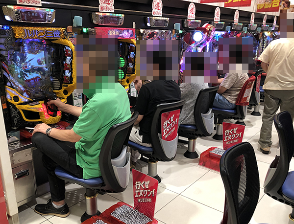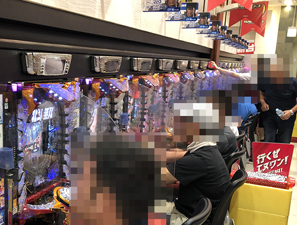 さっそく店内へと足を踏み入れると、パチンコとパチスロの各シマに、活躍をしているプレイヤーの姿があった。
