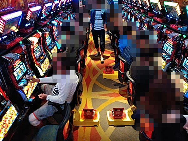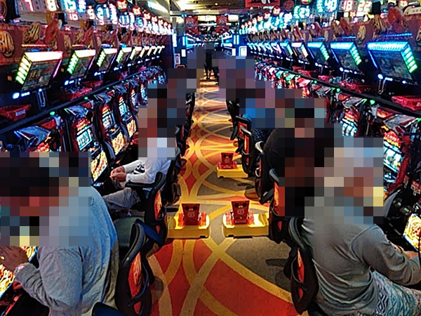 たくさんの笑顔が広がるホール内において、とくに活気を感じたのはハナハナシリーズ。どのシリーズ機にも楽しげなプレイヤーがおり、コーナー全体が華やかな雰囲気に包まれていた。