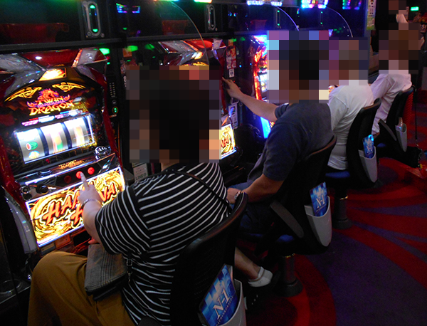 パチスロコーナーをみていくと、ハナハナシリーズが設置されているシマから活気が伝わってきた。