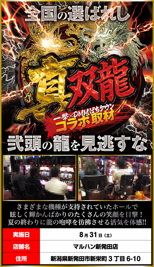 「マルハン新発田店」で弐頭の龍の存在を探る「真双龍」を実施。