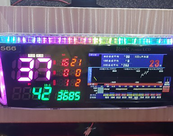 16時頃にデータカウンターをチェックすると、3685Gを消化した時点で37回のボーナスに当選している台を確認。