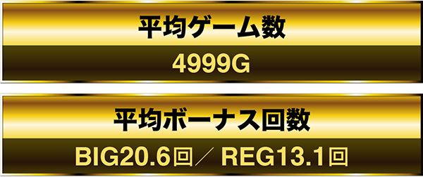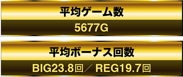 閉店時のデータでは、平均ゲーム数が5677G。平均ボーナス回数はBIGとREGをあわせて43.5回であった。