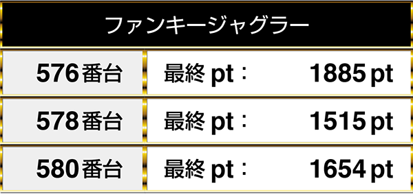3000ptを上回るデータを含め、トータルで7割の台がプラスptを記録していた。