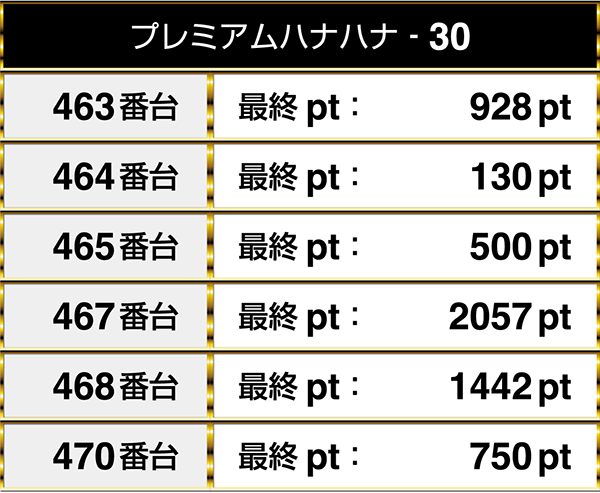 『プレミアムハナハナ‐30』は最終的に10台中6台がプラスpt!!