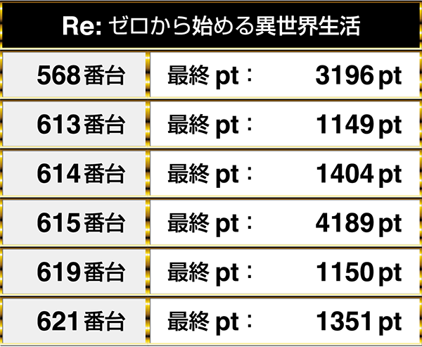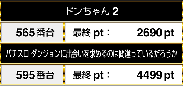 『ドンちゃん2』は2000pt以上を記録し、『パチスロ ダンジョンに出会いを求めるのは間違っているだろうか』は4000ptを上回っていた。