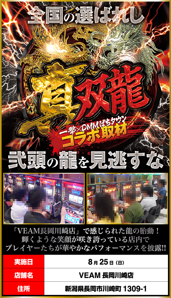滞在しているあいだに、たくさんのうれしそうなプレイヤーと出会えた「VEAM長岡川崎店」での「真双龍」となった。