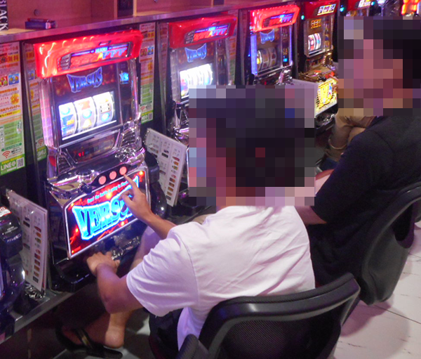 各シマに目を向けていくなかで、とくに楽しそうなプレイヤーが多かったのはボーナスタイプがメインで設置されているコーナー。そのなかでも、「バーサス」にひときわ華やかな光景が広がっていた。