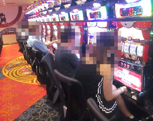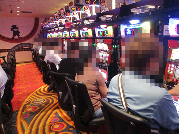 ホール内を進んでいくと、ジャグラーコーナーや沖スロコーナーなど、さまざまな場所が活気づいていた。