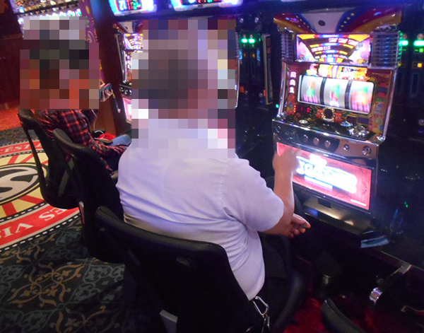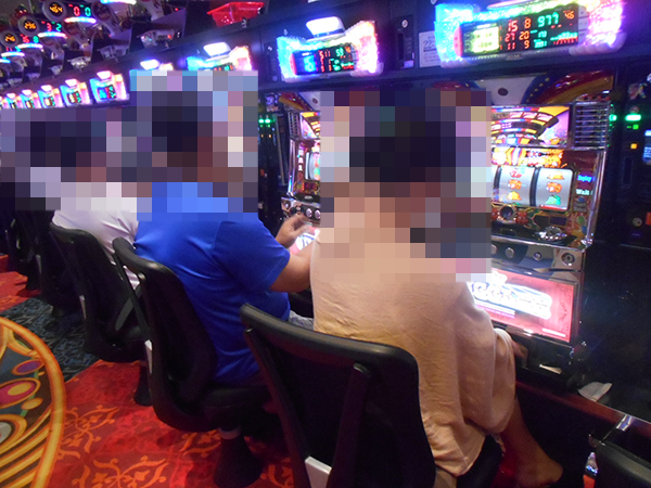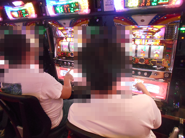 沖スロコーナーや1階にあるパチンココーナーなど、ホール内をすみずみまでみてまわったあとでも、ひときわ楽しそうな印象は変わらない。滞在中に席を離れる姿がみられなかったことにも納得をした。