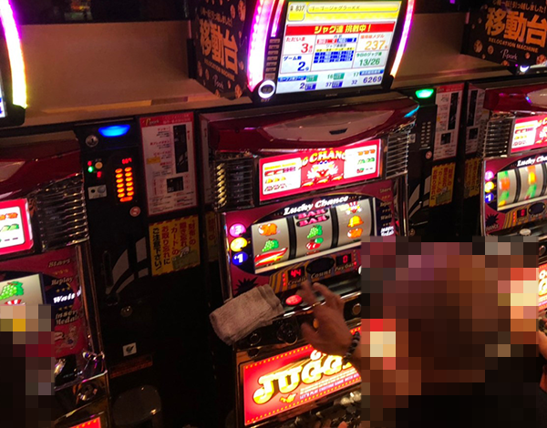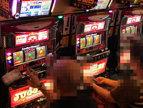 高稼働の「ピー・パーク山口店」において、ひときわ目立っていた「ゴーゴージャグラー」。確認時は9割が稼働しており、入店してから退店する時までつねに活気に包まれていた。