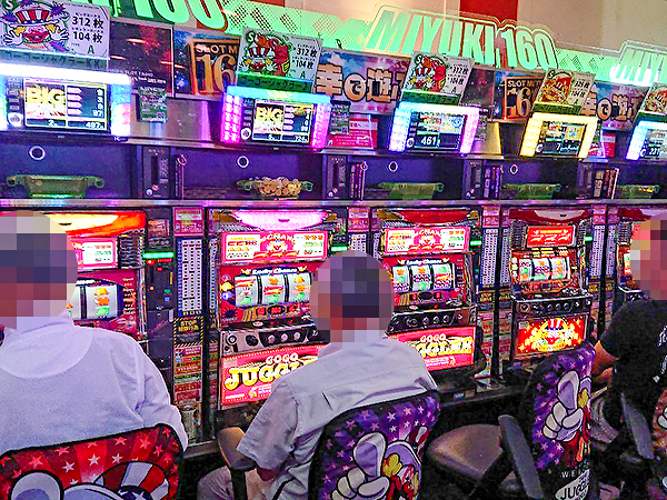 20円パチスロに目を向けると「ハッピージャグラーVII」や「マイジャグラーⅣ」、「ゴーゴージャグラー2」など、ジャグラーシリーズで華麗なパフォーマンスを披露するプレイヤーが見られ、周囲から羨望を集めていた。