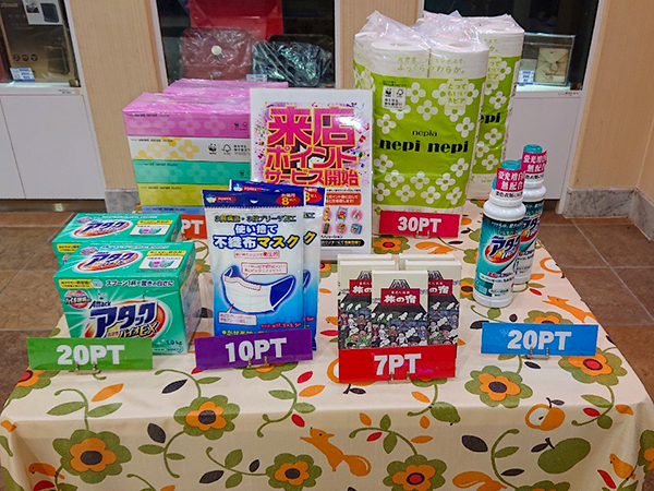 景品コーナーには来店ポイントで交換できるアイテムが用意されており、プレイヤーから好評を得ていた。
