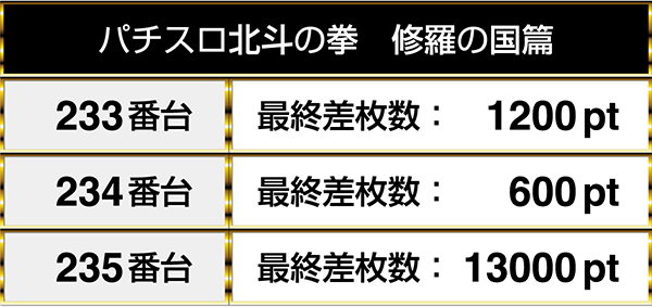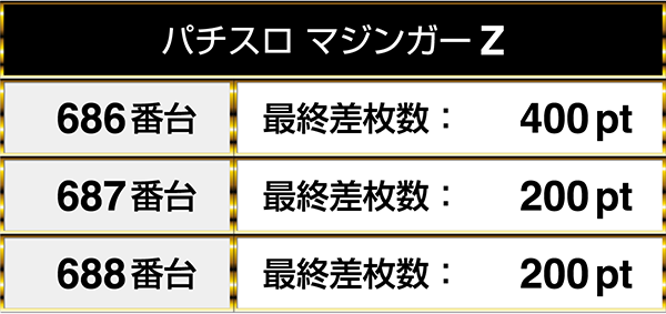 『パチスロ北斗の拳 修羅の国篇』と『パチスロ マジンガーZ』は、4台中3台がプラスpt。なかには、10000ptを上回るデータも残っていた。