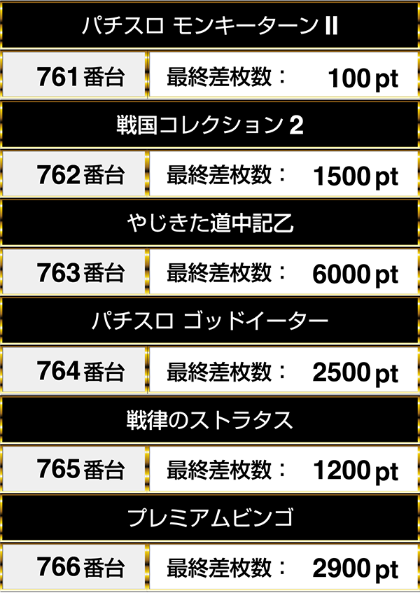 『パチスロ モンキーターンⅡ』から『プレミアムビンゴ』まで、合計で6機種6台が並んでプラスpt!