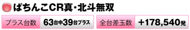 63台中39台がプラスで全台差玉数は+178,540発をマークした。