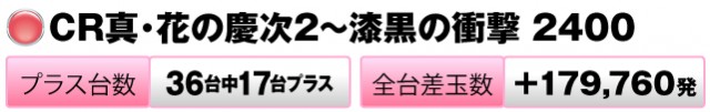 36台中17台がプラスで全台差玉数が+179,760発という素晴らしい結果に。