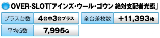 4台中3台がプラスで全台差枚数は+11,393枚。