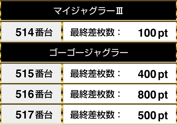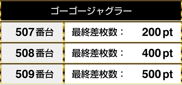 『ゴーゴージャグラー』の3台が並びながらプラスptを記録!