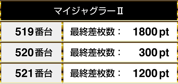 『マイジャグラーⅡ』は3台すべてがプラスpt!