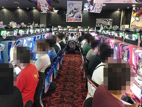 開店直後は20.83円パチスロの「Re:ゼロから始める異世界生活」を中心にプレイヤーが集まっていた。