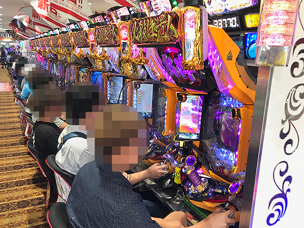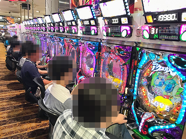 15時過ぎの4.16円パチンコを見ると「ぱちんこ 新・必殺仕置人」や「PフィーバーアクエリオンW 最終決戦ver.」が盛況の様子。華麗なパフォーマンスを披露するプレイヤーを多数目撃している。